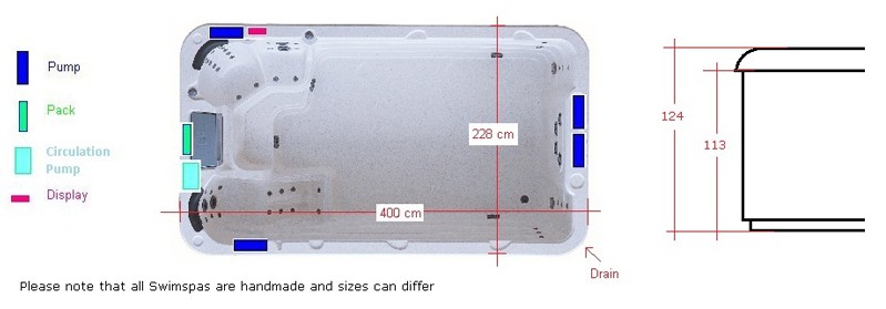 La versión de acceso a la gama de piscinas/spa. No por ello puede usted dejar de disfrutar de la práctica de la natación mientras su pareja saborea un relajante masaje.