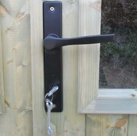 Dispone de una puerta frontal con cristal cuarteado y una ventana también frontal oscilobatiente.