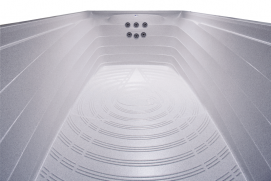 Además de su mayor tamaño incluye elementos de confort como doble iluminación y mando a distancia de serie. Para hacer sus baños - incluso nocturnos - más placenteros y divertidos.